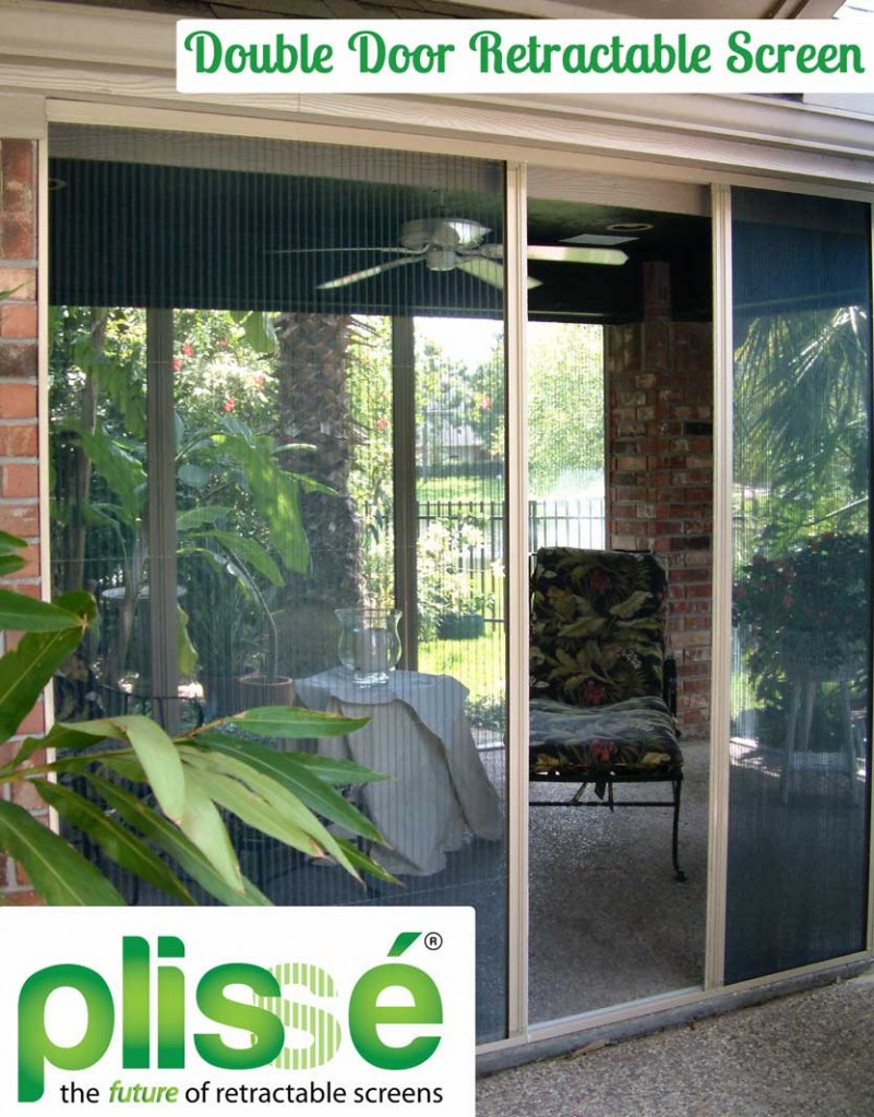 Screen Solutions Inc has introduced the latest innovation in retractable screen doors to North America, the Plissé (PLEE’-say). The Plissé is the perfect choice for French door retractable screens. The beauty and simplicity of the Plissé which has long made it a popular choice in Europe will especially enhance French doors. The simple design of the Plissé, which uses a unique pleated fabric to fold into its housing allows for a very small frame that will be almost invisible when not in use. With no center bar or other obstruction when open you have the use of the full width of your doors. When closed, the Plissé, being slightly more visible than other retractable screens, will not be susceptible to damage by people or pets running into it.