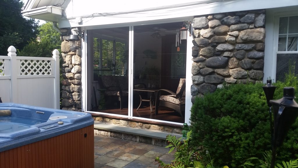 Now that the LaLibertes have a Plisse retractable screen on their screened porch they say they sit outside every evening. They are able to relax peacefully on their back porch for as long as they want. And I can sneak out to the yard to water my plants or fill the bird feeder and come back to the safety of our screened porch when the mosquitoes get to be too much, says LaLiberte.